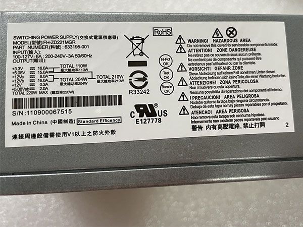 | Nomi di modello applicabili | HP Power Supply s5-1321cx D10-220P PSU 220W |